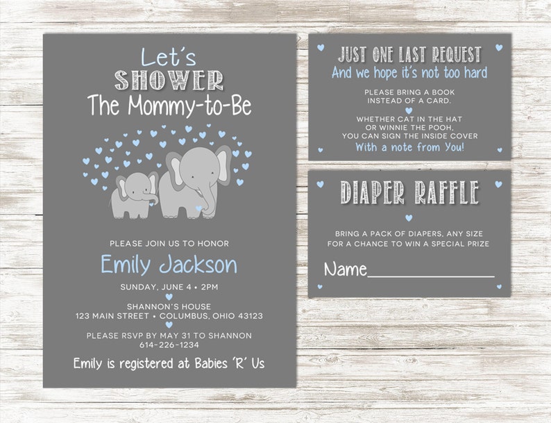 Baby Elephant Blue Infant Shower Invitation Add together Ons Digital Or Printed Diaper Raffle Book Insert